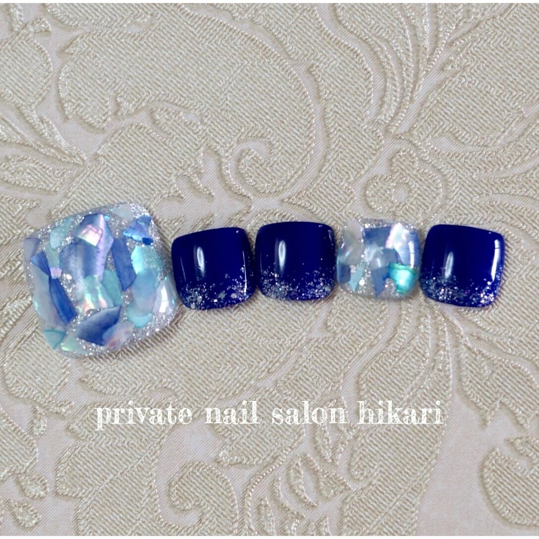 夏 ネイル 足 ブルー