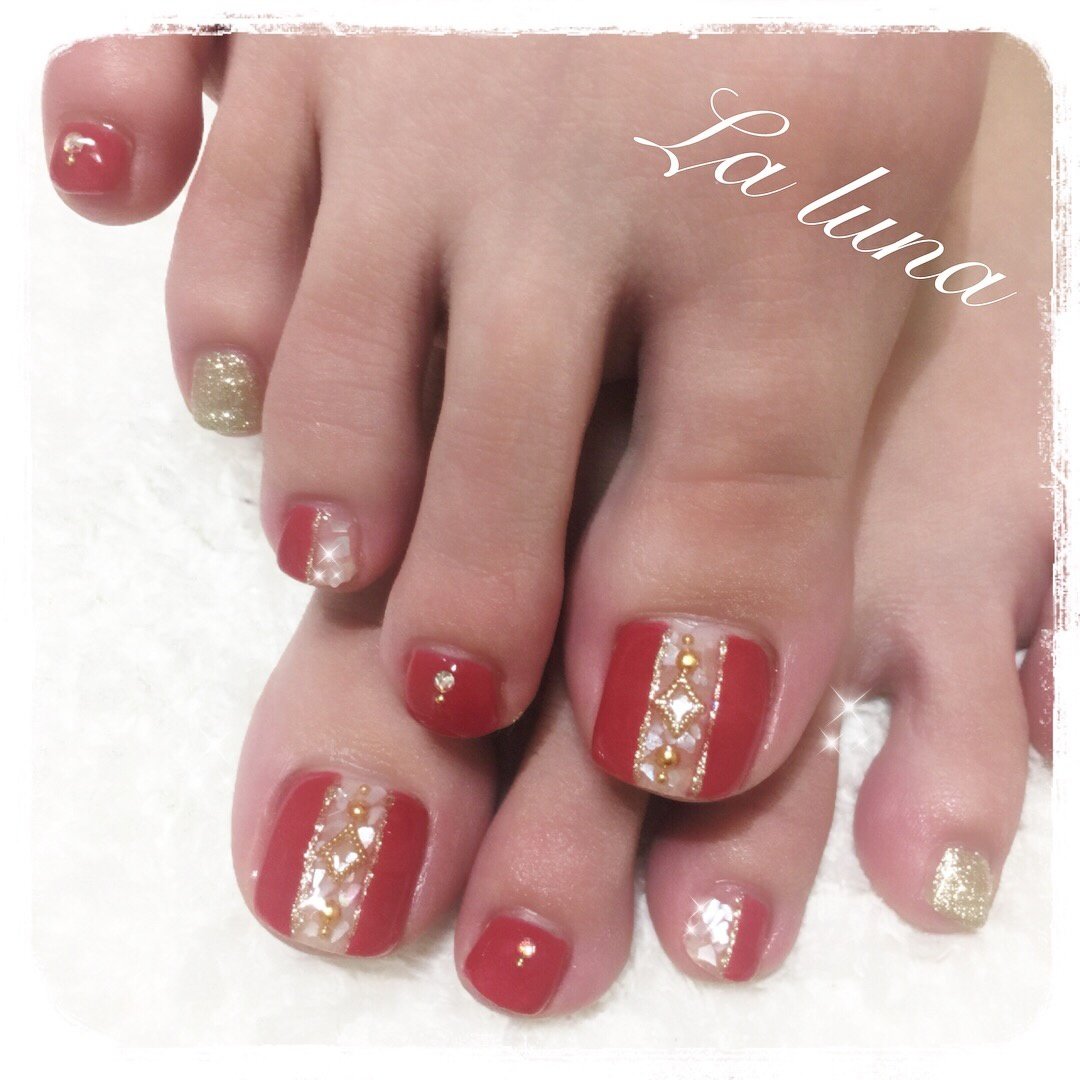 夏 ネイル 足 赤