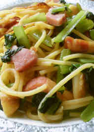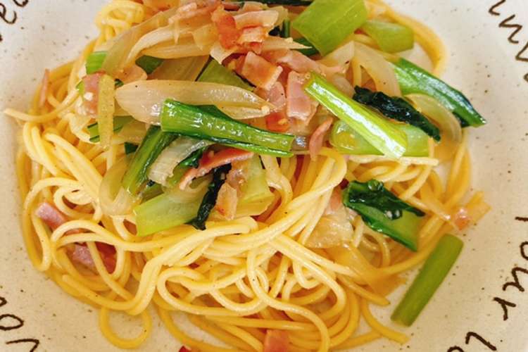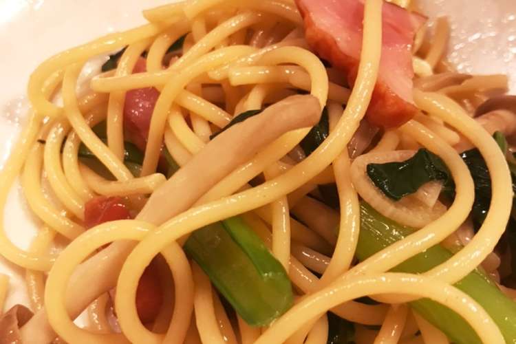 小松菜 ベーコン パスタ めんつゆ