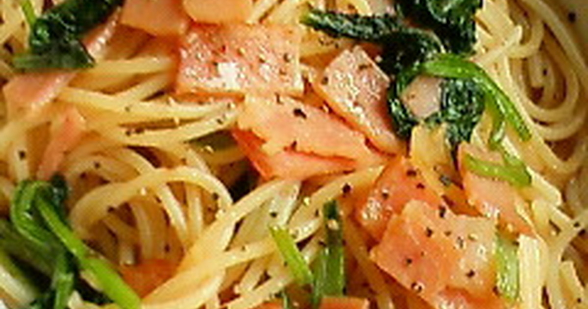 小松菜 ベーコン パスタ フライパン
